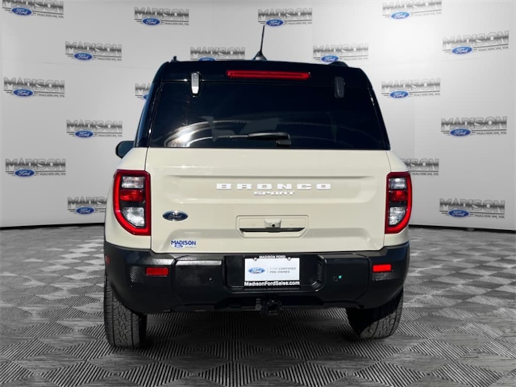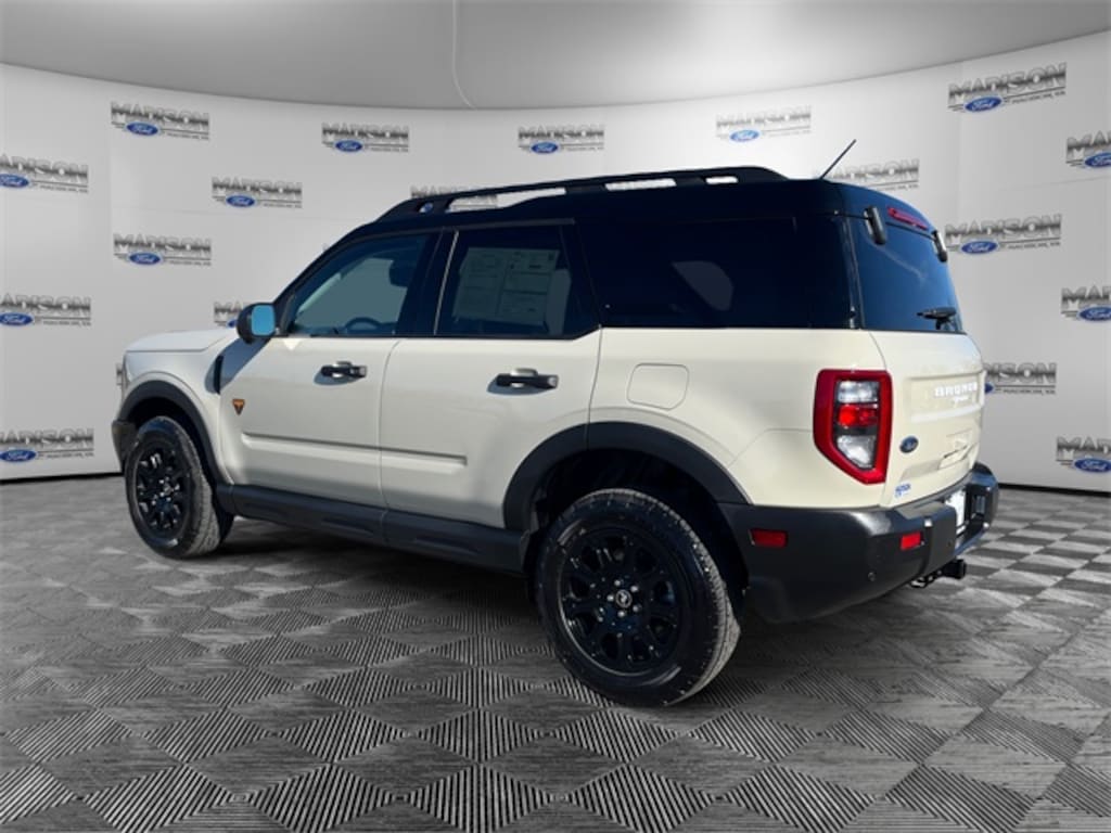 Certified. Desert Sand 2025 Ford Bronco Sport Badlands 4WD 8-Speed Automatic EcoBoost 2.0L I4 GTDi DOHC Turbocharged VCT Equipment Group 400A, Garage door transmitter, Heated front seats, Heated steering wheel, Leather Trimmed Front Bucket Seats, Power passenger seat, Wheels: 17" Matte Black-Painted Aluminum.