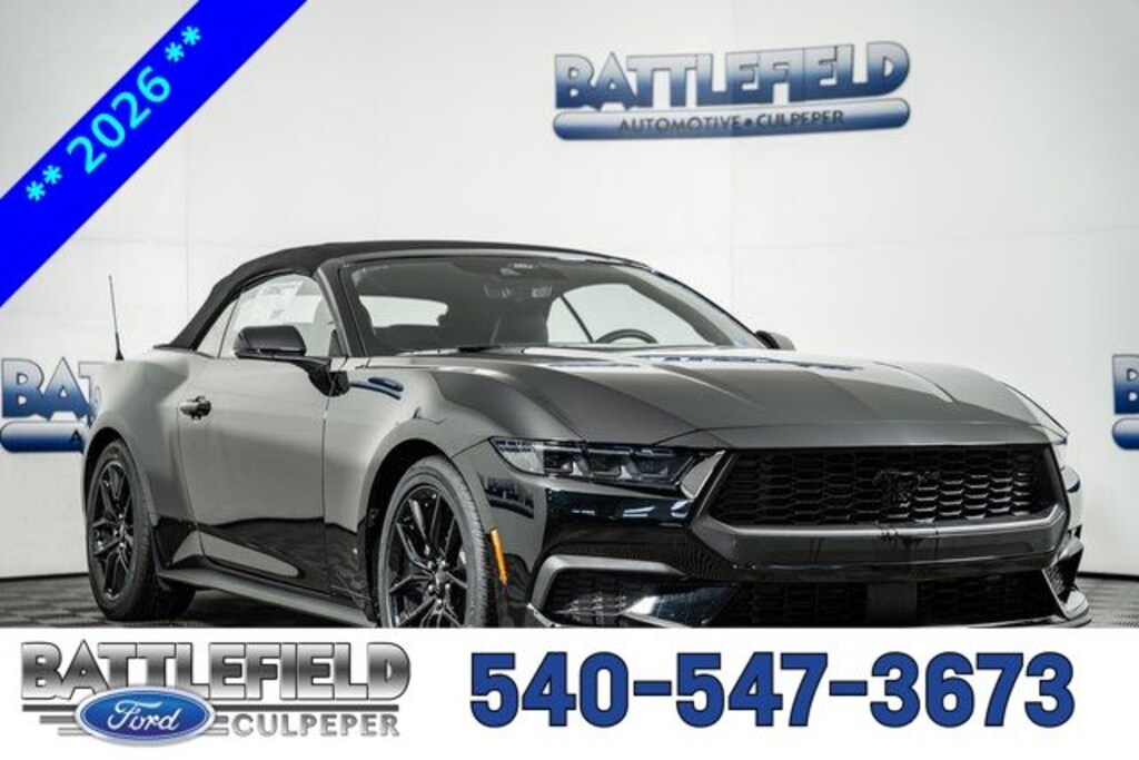 2026 Ford Mustang EcoBoost Premium 4G MODEM ACTIVE NOISE CANCELLATION ELECTRONIC PWR ASST STEER FORD APP INDEPENDENT REAR SUSPEN INTELLIGENT ACCESS W/PUSH BUTTON START REAR PARKING SENSORS REAR VIEW CAMERA REMOTE START W/ FORD APP SELECTABLE DRIVE MODES SIRIUSXM W/360L-N/A AK&HI SYNC4 TRACK APPS, Active Anti-Theft System, Adaptive Cruise Control with Stop and Go, Aluminum Foot Pedals, AM/FM Stereo, Anti-Theft Package, Auto High-beam Headlights, Automatic temperature control, B&O Sound System by Bang & Olufsen with 12 Speakers, Black Front and Rear Pony Badges, Black Mirror Caps, Driver Seat Memory with 3 Settings, Equipment Group 201A High Package, Exterior Parking Camera Rear, Ford Co-Pilot360 Assist+, HD Radio, Heated front seats, Lane-Keeping System with Lane Keeping Aid, Leather-Trimmed Bucket Seats with Color Accents, Locking Center Console, Magnesium Framed Panoramic Curved Display, Mustang Nite Pony Package, One-Year Connected Navigation, Perimeter Alarm, Pre-Collision Assist with Automatic Emergency Braking, Rain sensing wipers, Rear Parking Sensors, Remote keyless entry, SiriusXM with 360L, SYNC 4, Wheel Locking Kit, Wheels: 19" x 8.5" Ebony Black-Painted Aluminum. 22/33 City/Highway MPG Price includes: $1000 - Retail Customer Cash. Exp. 03/31/2026