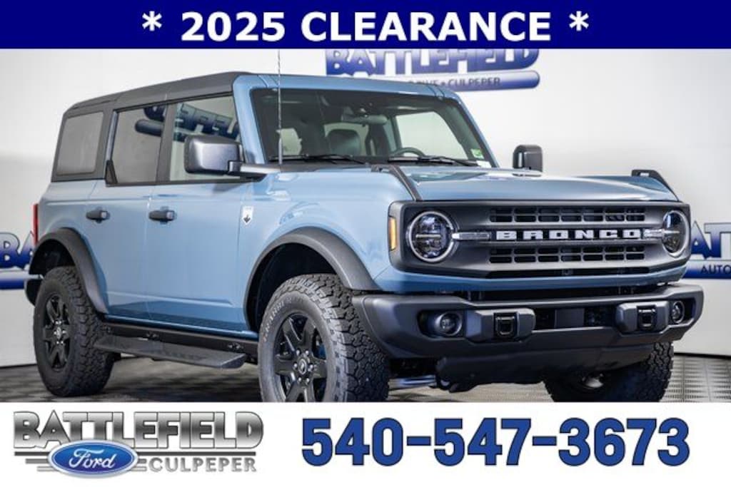 2025 Ford Bronco Big Bend 12"LCD CTR STACK TOUCHSCRN AUTO START STOP TECH BRAKES, 4-WHEEL DISC/ABS FORDPASS CONNECT FRONT STABILIZER BAR HILL START ASSIST PRE-COLLISION ASSIST W/AEB PUSH-BUTTON START REAR VIEW CAMERA SIRIUSXM W/360L- NA AK&HI SYNC4 TER MGMT W/G.O.A.T. MODES TOOL KIT- DOOR/TOP REMOVAL, 2-Door Intelligent Access w/Lock/Unlock, 4.46 Final Drive Ratio w/Rear Locking Differential, Ambient Footwell Lighting, Auto High-beam Headlights, Auxiliary Switches, Black Diamond Package, Carbonized Gray Molded-In-Color Hard Top, Connected Navigation, Dr & Pass Illuminated Sliding Visor Vanity Mirrors, Dual Smart Charging USB Ports, Dual-Zone Electronic Automatic Temperature Control, Emergency communication system: 911 Assist, Equipment Group 222A Mid Package, Exterior Parking Camera Rear, Front Row Heated Seats, Hard Top Sound Deadening Headliner, Leather Shift Knob, LED Fog Lamps, Powder Coated Steel Front & Rear Bumpers, Power Outlet - Back Side of Center Floor Console, Raptor-Style Running Board, Rear Parking Sensors, Rear-Window Defroster & Washer, Remote keyless entry, Rock Rails, SiriusXM w/360L, Trailer Tow Package (DIO), Washout Capable Rubberized Flooring, Wheels: 17" Black High Gloss Painted Aluminum. Price includes: $2750 - Retail Customer Cash. Exp. 04/30/2026