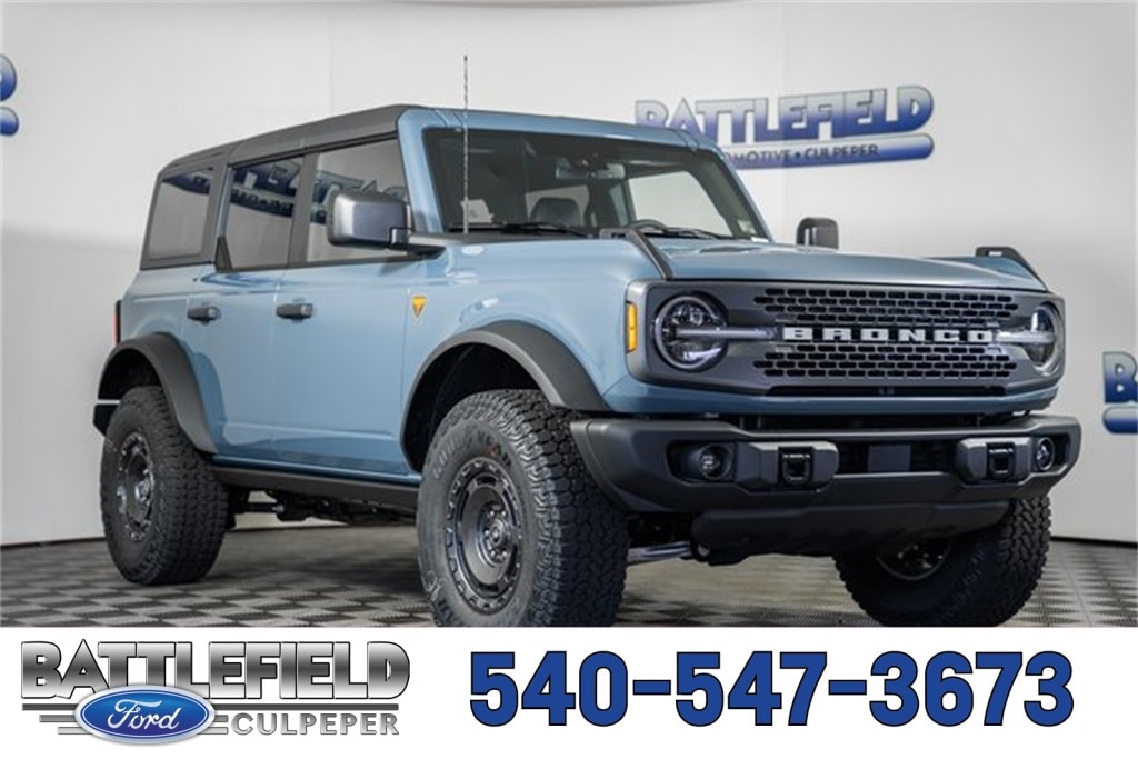 2025 Ford Bronco Badlands 12"LCD CTR STACK TOUCHSCRN ADVANCED 4X4 BADLANDS SUSPENSION BRAKES, 4-WHEEL DISC/ABS FORDPASS CONNECT FRNT/REAR LOCKING DIFFRNTL FRONT STA-BAR DISCONNECT HILL START ASSIST MID PACKAGE PRE-COLLISION ASSIST W/AEB PUSH-BUTTON START REAR VIEW CAMERA SIRIUSXM W/360L- NA AK&HI TER MGMT W/G.O.A.T. MODES TOOL KIT- DOOR/TOP REMOVA, 4.7 Final Drive Ratio, Auto High-beam Headlights, Auto-dimming Rear-View mirror, Carbonized Gray Molded-In-Color Hard Top, Equipment Group 332A Mid Package, Exterior Parking Camera Rear, Heated front seats, Heated steering wheel, High Clearance Fender Flares, High Clearance Suspension, Leather Shift Knob, Leather-Trimmed/Vinyl Bucket Seats, Position-Sensitive Bilstein Shock Absorbers, Rear-Window Defroster & Washer, Remote keyless entry, Sasquatch Package, SiriusXM w/360L. Price includes: $1500 - Retail Bonus Cash. Exp. 01/05/2026