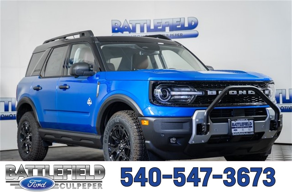 2025 Ford Bronco Sport Outer Banks BRAKES, 4-WHEEL DISC/ABS FORDPASS CONNECT INTELL ACCESS W/PUSH START REMOTE KEYLESS ENTRY REMOTE START SYSTEM SIRIUSXM - SVC N/A AK&HI SYNC4 W/EVR & 13.2" SCRN TERRAIN MANAGEMENT SYS-5, 110V/400W AC Power Outlet, 2nd Row Carpeted Seatback, Auto High-beam Headlights, Automatic temperature control, Auxiliary Switches & Wiring, B&O Sound System by Bang & Olufsen, Brush Guard, Class II Trailer Tow Pack w/Trailer Sway Control, Connected Navigation, Emergency communication system: SYNC 4 911 Assist, Equipment Group 300A, Fender Tie Downs, Front & Rear Black Bumpers, Front Parking Sensors, HD Radio, Heated front seats, Heated steering wheel, High Clearance Fender Flares, HOSS 2.0 Off-Road Suspension, Interior Grab Handle, Memory seat, Outer Banks Tech Package+, Power Moonroof, Rain sensing wipers, Rear Parking Sensors, Recovery Hooks, Remote keyless entry, Sasquatch Outer Banks Package, SYNC 4 w/Enhanced Voice Recognition, Trail Control for Off-Road, Wheels: 17" Ebony Black-Painted Aluminum. 25/30 City/Highway MPG Price includes: $1000 - Retail Bonus Cash. Exp. 01/05/2026