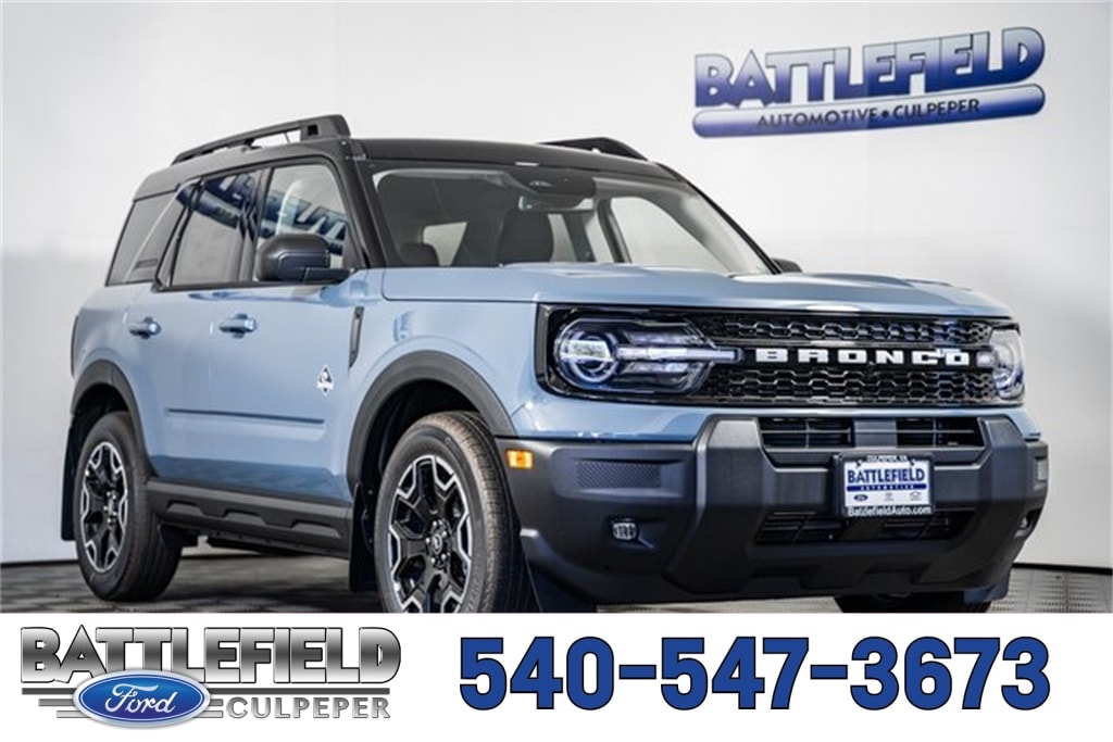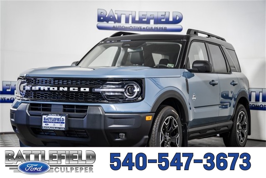 2025 Ford Bronco Sport Outer Banks FORDPASS CONNECT INTELL ACCESS W/PUSH START REMOTE KEYLESS ENTRY REMOTE START SYSTEM SIRIUSXM - SVC N/A AK&HI SYNC4 W/EVR & 13.2" SCRN TERRAIN MANAGEMENT SYS-5, Auto High-beam Headlights, Emergency communication system: SYNC 4 911 Assist, Equipment Group 300A, Garage door transmitter, Heated front seats, Heated steering wheel, Memory seat, Rain sensing wipers, Rear Parking Sensors, Remote keyless entry, SiriusXM, SYNC 4 w/Enhanced Voice Recognition, Wheels: 18" Ebony Black-Painted Aluminum. 25/30 City/Highway MPG Price includes: $1000 - Retail Bonus Cash. Exp. 01/05/2026