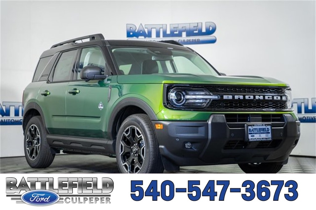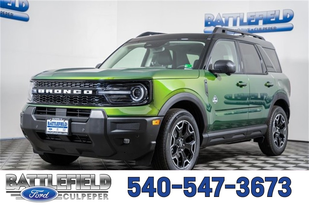 2025 Ford Bronco Sport Outer Banks FORDPASS CONNECT INTELL ACCESS W/PUSH START REMOTE KEYLESS ENTRY REMOTE START SYSTEM SIRIUSXM - SVC N/A AK&HI SYNC4 W/EVR & 13.2" SCRN TERRAIN MANAGEMENT SYS-5, 360-Degree Camera w/Trail & Split View, Auto High-beam Headlights, Auto-dimming Rear-View mirror, Automatic temperature control, B&O Sound System by Bang & Olufsen, Connected Navigation, Emergency communication system: SYNC 4 911 Assist, Equipment Group 300A, Front Driver/Passenger Seat Back Map Pockets, Front Parking Sensors, HD Radio, Heated front seats, Heated steering wheel, Memory seat, Outer Banks Tech Package+, Power Moonroof, Premium Trimmed Front Bucket Seats w/Ebony/Roast, Premium Trimmed Front Bucket Seats w/Platinum Blue, Rain sensing wipers, Rear Parking Sensors, Remote keyless entry, SYNC 4 w/Enhanced Voice Recognition, Wheels: 18" Ebony Black-Painted Aluminum. 25/30 City/Highway MPG Price includes: $1500 - Retail Bonus Cash. Exp. 01/05/2026