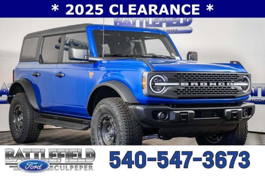 2025 Ford Bronco Badlands** Raptor-Style Running Board, 12"LCD CTR STACK TOUCHSCRN ADVANCED 4X4 BADLANDS SUSPENSION BRAKES, 4-WHEEL DISC/ABS FORDPASS CONNECT FRNT/REAR LOCKING DIFFRNTL FRONT STA-BAR DISCONNECT HILL START ASSIST PRE-COLLISION ASSIST W/AEB PUSH-BUTTON START REAR VIEW CAMERA SIRIUSXM W/360L- NA AK&HI TER MGMT W/G.O.A.T. MODES TOOL KIT- DOOR/TOP REMOVAL, 4.7 Final Drive Ratio, Auto High-beam Headlights, Auto-dimming Rear-View mirror, Carbonized Gray Molded-In-Color Hard Top, Emergency communication system: 911 Assist, Equipment Group 331A Standard Package, Exterior Parking Camera Rear, Heated front seats, Heated steering wheel, High Clearance Fender Flares, High Clearance Suspension, Marine Grade Vinyl Heated Bucket Seats, Position-Sensitive Bilstein Shock Absorbers, Raptor-Style Running Board, Rear-Window Defroster & Washer, Remote keyless entry, Sasquatch Package, SiriusXM w/360L, SYNC 4, Trailer Tow Package (DIO), Wheels: 17" Carbonized Gray Painted Aluminum. Price includes: $2750 - Retail Customer Cash. Exp. 04/30/2026