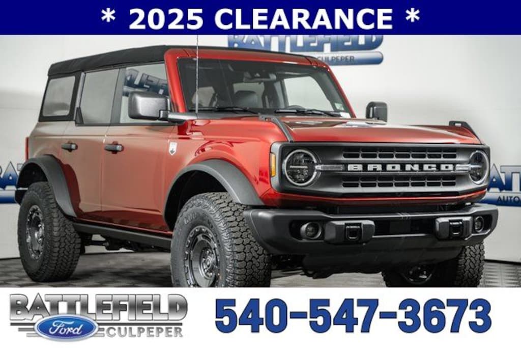 2025 Ford Bronco Big Bend 12"LCD CTR STACK TOUCHSCRN AUTO START STOP TECH BRAKES, 4-WHEEL DISC/ABS FORDPASS CONNECT FRONT STABILIZER BAR HILL START ASSIST PRE-COLLISION ASSIST W/AEB PUSH-BUTTON START REAR VIEW CAMERA SIRIUSXM W/360L- NA AK&HI SYNC4 TER MGMT W/G.O.A.T. MODES TOOL KIT- DOOR/TOP REMOVAL, 2-Door Intelligent Access w/Lock/Unlock, 4.7 Final Drive Ratio, Ambient Footwell Lighting, Auto High-beam Headlights, Auxiliary Switches, Black Diamond Package, Connected Navigation, Dr & Pass Illuminated Sliding Visor Vanity Mirrors, Dual front side impact airbags, Dual Smart Charging USB Ports, Dual-Zone Electronic Automatic Temperature Control, Equipment Group 222A Mid Package, Exterior Parking Camera Rear, Front Row Heated Seats, High Clearance Fender Flares, High Clearance Suspension, Internet access capable: FordPass Connect, LED Fog Lamps, Position-Sensitive Bilstein Shock Absorbers, Powder Coated Steel Front & Rear Bumpers, Power Outlet - Back Side of Center Floor Console, Rear Parking Sensors, Remote keyless entry, Rock Rails, Sasquatch Package, SiriusXM w/360L, SYNC 4, Trailer Tow Package (DIO), Washout Capable Rubberized Flooring, Wheels: 17" Black High Gloss Painted Aluminum, Wheels: 17" Carbonized Gray Painted Aluminum. Price includes: $2750 - Retail Customer Cash. Exp. 04/30/2026