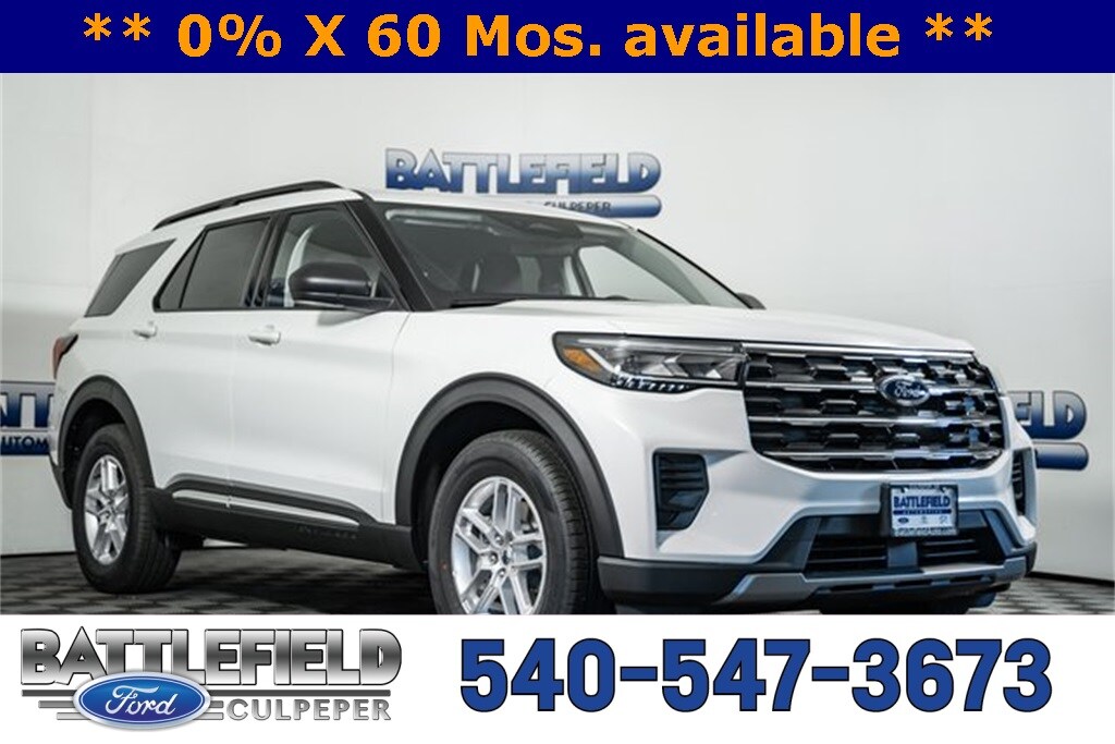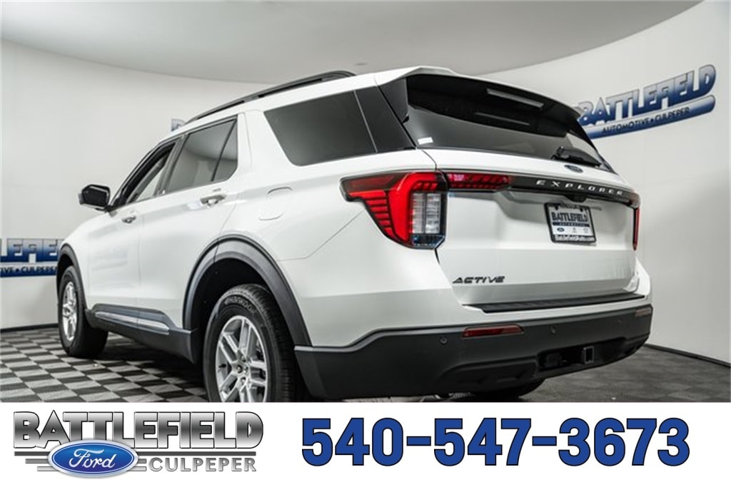 2025 Ford Explorer Active 13.2" LCD TOUCHSCREEN 4-DR INTELL ACCESS LOCK/ UNLOCK W/PUSH-BUTTON START AM/FM STEREO W/6 SPEAKERS BRAKES, 4-WHEEL DISC/ABS FORD CO-PILOT360 ASSIST+ FORDPASS CONNECT HILL START ASSIST INTERSECTION ASSIST REAR VIEW CAMERA SIDE-WIND STABILIZATION SIRIUSXM W/360L- NA AK&HI WIRELESS APPLE CARPLAY AND ANDROID AUTO, 4WD, AM/FM radio: SiriusXM with 360L, Apple CarPlay/Android Auto, Auto High-beam Headlights, Automatic temperature control, Emergency communication system: 911 Assist, Equipment Group 200A Standard Package, Exterior Parking Camera Rear, Heated ActiveX Seating Material Captain's Chairs, Heated front seats, Leather steering wheel, Navigation System, Power Liftgate, Remote keyless entry, Speed-Sensitive Wipers, Wheels: 18" Sparkle Silver-Painted Aluminum. 20/27 City/Highway MPG Price includes: $1500 - Bonus Customer Cash. Exp. 01/05/2026