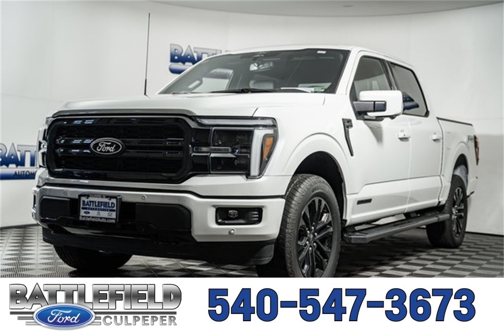 2025 Ford F-150 Lariat 360-DEGREE CAMERA BLIS W/CROSS-TRAFFIC ALERT FORDPASS CONNECT 5GWI-FI HOTSPOT TELEMATICS MODEM INTELLIGENT ACCESS W/PUSH BUTTON START LANE-KEEPING SYSTEM POST-COLLISION BRAKING PRE-COLLISION ASSIST W/AEB REMOTE START SYSTEM REVERSE BRAKE ASSIST REVERSE SENSING AND REAR VIEW CAMERA SIRIUSXM W/360L- NA AK&HI SYNC4 W/EVR & 12" SCREEN, BLUECRUISE EQUIP, 3.5L PowerBoost Full-Hybrid V6, 4WD, 2nd Row Heated Seats, 4 Pickup Box Tie-Down Plates, 4x4 FX4 Off-Road Bodyside Decal, ActiveX Trimmed Bucket Seats (B), Ambient Lighting - Ice Blue Color Only, Bed Utility Package, Black Exterior Badging, Black Grille, Black Taillamp Bezels, Body-Color Front & Rear Bumpers, Body-Color Skull Caps & Door Handles, Console Worksurface, Dark Interior Appliques, Electronic Locking w/3.73 Axle Ratio, Equipment Group 502A High, FX4 Off-Road Package, Gray Box Side Decal, GVWR: 7,400 lbs Payload Package, Heads-Up Display, Hill Descent Control, Illuminated Driver & Passenger Visors, Integrated Trailer Brake Controller, Lariat Black Appearance Package, LED Box Lighting, Matte Black Tailgate F-150 Decal, Mobile Office Package, Monotube Rear Shocks, Navigation system: Connected Navigation, Off-Road Tuned Front Shock Absorbers, Partitioned Lockable Rear Storage, Power Tailgate, Power-Sliding Rear Window, Pro Access Tailgate, Radio: B&O Unleashed Sound System by Bang & Olufsen, Rock Crawl Mode, Tow/Haul Package, Tray Style Floor Liner w/o Carpet Mats, Wheels: 20" Chrome-Like PVD, Wireless Charging.