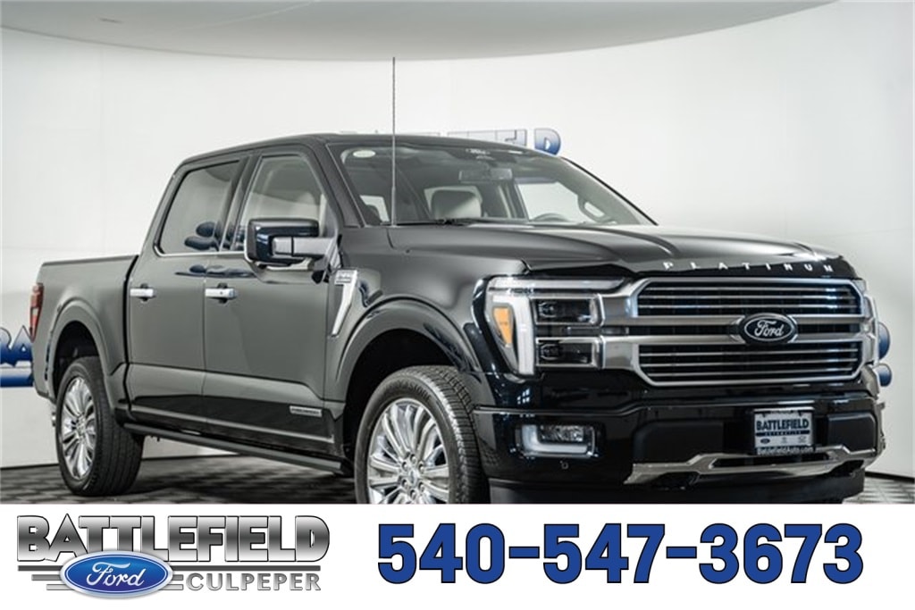 2025 Ford F-150 Platinum ** PRO POWER ONBOARD - 7.2KW BLUECRUISE EQUIP: 1 YEAR PLAN, 360-DEGREE CAMERA BED UTILITY PKG BLIS W/CROSS TRAFFIC ALERT FORDPASS CONNECT 5GWI-FI HOTSPOT TELEMATICS MODEM INTELL ACCESS W/PUSH START LANE-KEEPING SYSTEM MOBILE OFFICE PKG POST-COLLISION BRAKING REVERSE BRAKE ASSIST REVERSE SENSING AND REAR VIEW CAMERA SYNC4 W/EVR & 12" SCREEN TOW/HAUL PKG, 3.5L PowerBoost Full-Hybrid V6, 4WD, Auto High-beam Headlights, Automatic temperature control, Electronic Locking w/3.73 Axle Ratio, Equipment Group 703A Plus, Full Quilted Leather Bucket Seats, GVWR: 7,400 lbs Payload Package, Heads-Up Display, Heated front seats, Heated rear seats, Heated steering wheel, Illuminated Scuff Plate, Leather-Wrapped Instrument Panel, Memory seat, Navigation system: Connected Navigation, Platinum Hood Lettering, Platinum Plus Experience, Platinum Plus Exterior Theme, Platinum Plus Interior Theme, Radio: B&O Unleashed Sound System by Bang & Olufsen, Rain sensing wipers, Remote keyless entry, Satin Single Exhaust, Tough Bed Spray-In Bedliner, Tray Style Floor Liner, Twin Panel Moonroof, Ventilated front seats, Wheel Well Liner, Wheels: 20" Painted Gloss Ebony Black, Wheels: 22" Premium Painted w/Chrome Inserts. Price includes: $500 - Bonus Customer Cash. Exp. 01/05/2026