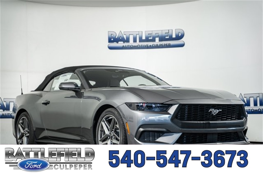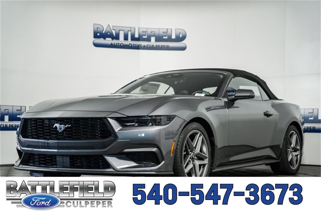 2025 Ford Mustang EcoBoost Convertible** ACTIVE NOISE CANCELLATION ELECTRONIC PWR ASST STEER FORD CO-PILOT360 FORDPASS CONNECT 4GWI-FI INDEPENDENT REAR SUSPEN INTELLIGENT ACCESS W/PUSH BUTTON START REAR PARKING SENSORS REAR VIEW CAMERA SELECTABLE DRIVE MODES SYNC4 TRACK APPS, 9-Speaker Stereo System, Active Valve Performance Exhaust, Auto High-beam Headlights, Automatic temperature control, Equipment Group 101A High Package, Exterior Parking Camera Rear, Heated front seats, Leather Shift Knob, Rain sensing wipers, Rear Parking Sensors, Remote keyless entry, SiriusXM w/360L & HD Radio, SYNC 4, Wheels: 19" x 8.5" Premier Polished Aluminum. 20/28 City/Highway MPG Price includes: $1500 - Retail Customer Cash. Exp. 01/05/2026