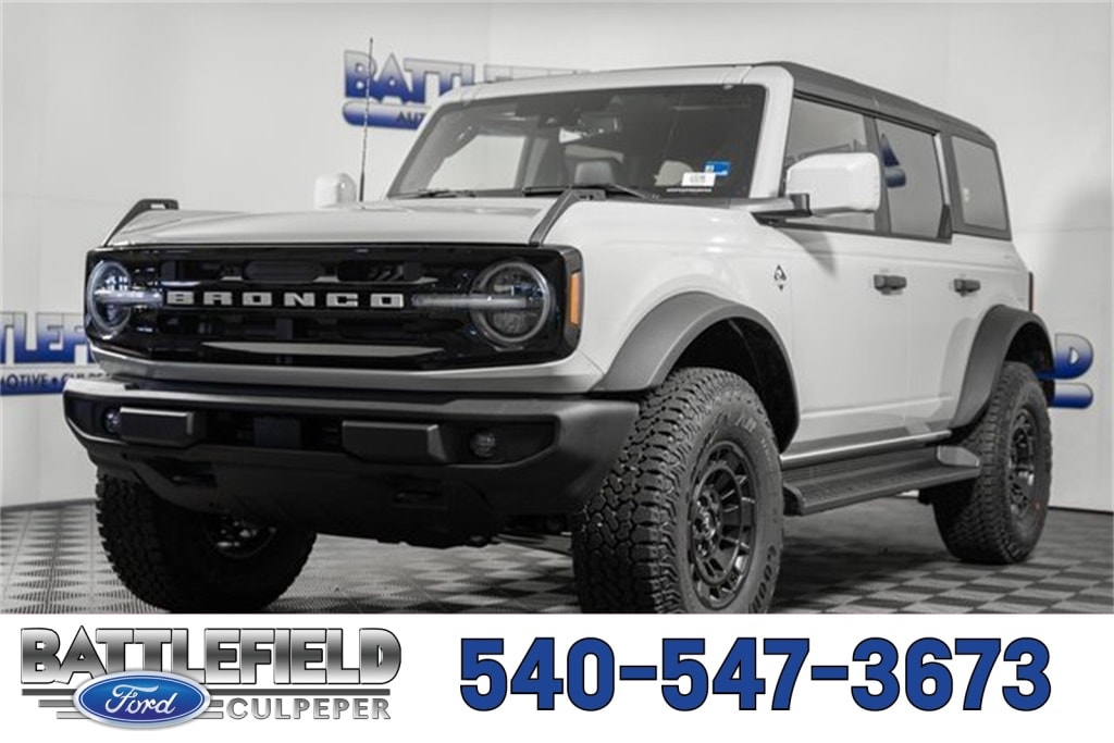 2026 Ford Bronco Outer Banks ** 12" CENTER DISPLAY AUTO START STOP TECH BRAKES, 4-WHEEL DISC/ABS FORD APP FORD CO-PILOT360 FRONT STABILIZER BAR HILL START ASSIST MID PACKAGE PUSH-BUTTON START SYNC4 TER MGMT W/G.O.A.T. MODES TOOL KIT- DOOR/TOP REMOVAL, 4.7 Final Drive Ratio, AM/FM Stereo, Auto High-beam Headlights, Auto-dimming Rear-View mirror, Automatic temperature control, Carbonized Gray Molded-in-Color Hard Top, Connected Navigation, Emergency communication system: 911 Assist, Equipment Group 312A Mid Package, Exterior Parking Camera Rear, Ford Connectivity Package (1-Year Included), Hard Top Sound Deadening Headliner, Heated front seats, Heated Leather-Trimmed/Vinyl Bucket Seats, Heated steering wheel, High Clearance Fender Flares, High Clearance Suspension, Navigation system: Connected Navigation, Position-Sensitive Bilstein Shock Absorbers, Power driver seat, Rear-Window Defroster and Washer, Remote keyless entry, Sasquatch Package, SiriusXM with 360L, SYNC 4, Trailer Tow Package, Wheels: 17" Matte Black Alloy.