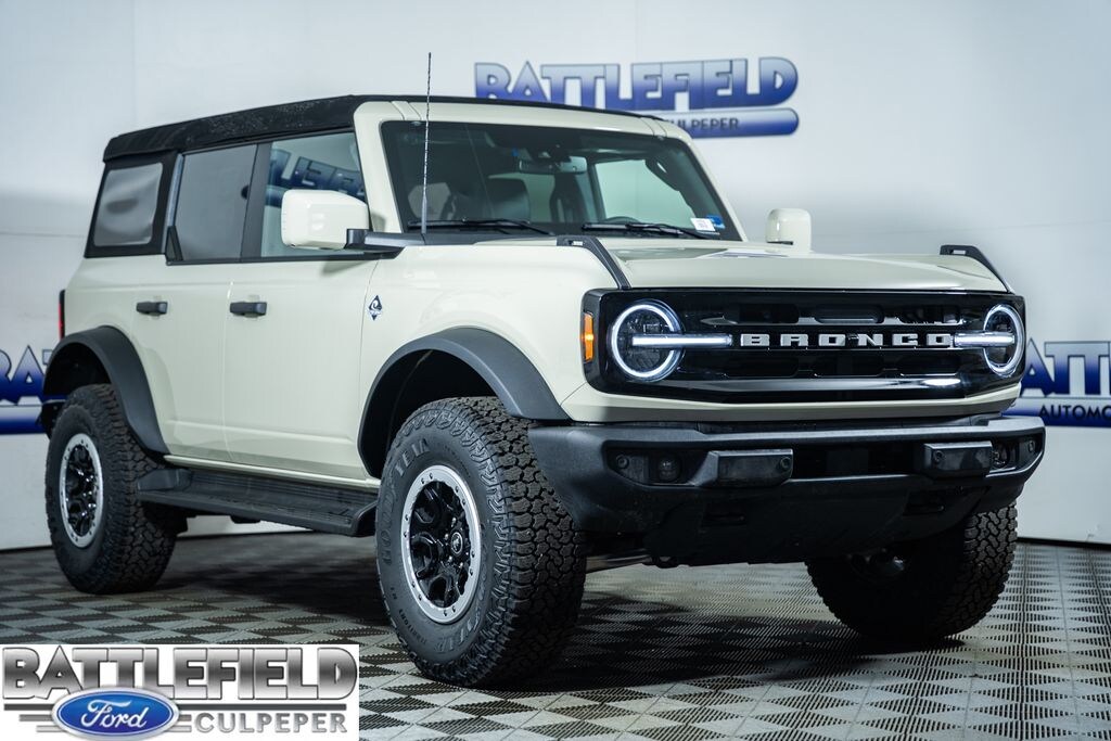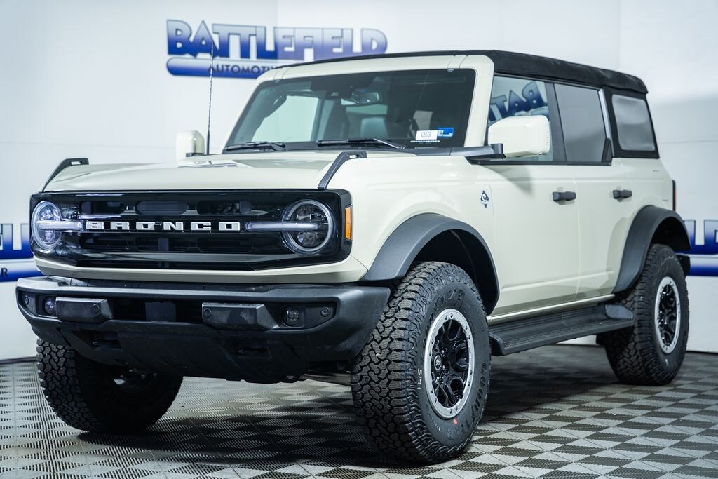 2026 Ford Bronco Outer Banks 12" CENTER DISPLAY AUTO START STOP TECH BRAKES, 4-WHEEL DISC/ABS FORD APP FORD CO-PILOT360 FRONT STABILIZER BAR HILL START ASSIST MID PACKAGE PUSH-BUTTON START SYNC4 TER MGMT W/G.O.A.T. MODES TOOL KIT- DOOR/TOP REMOVAL, CONN PKG: 1 YR INCL W/FORD APP, 360-Degree Camera, 4.7 Final Drive Ratio, Adaptive Cruise Control, Auto-dimming Rear-View mirror, Connected Navigation, Equipment Group 314A Lux Package, Evasive Steering Assist, Ford Connectivity Package (1-Year Included), Front Parking Sensors, Heated front seats, Heated Leather-Trimmed/Vinyl Bucket Seats, Heated steering wheel, High Clearance Fender Flares, High Clearance Suspension, Information on Demand Panel, Navigation system: Connected Navigation, Position-Sensitive Bilstein Shock Absorbers, Radio: B&O Sound System by Bang and Olufsen, Sasquatch Package, Sideview Mirrors, Wheels: 17" Black High Gloss-Painted Aluminum, Wheels: 17" Matte Black Alloy.
