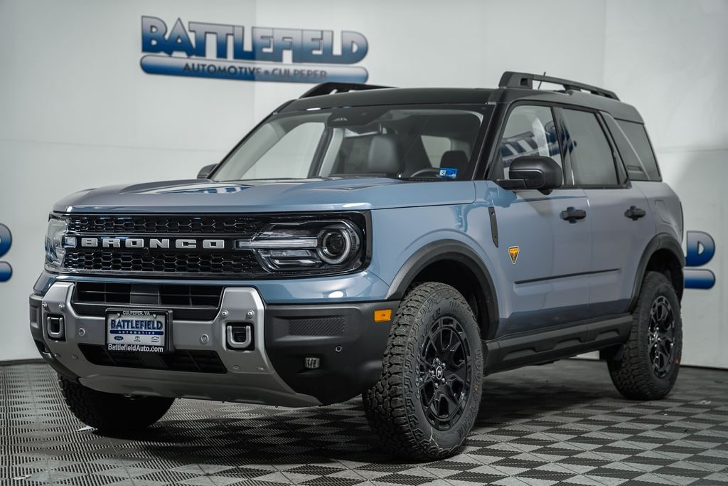 2026 Ford Bronco Sport Badlands FORD APP FORD CO-PILOT360ASSIST2.0 INTELL ACCESS W/PUSH START PADDLE SHIFTERS REMOTE KEYLESS ENTRY REMOTE START SYSTEM SYNC4 W/EVR & 13.2" SCRN TERRAIN MANAGEMENT SYS-7 TRAIL CTRL W/1-PEDAL DR TWIN CLUTCH REAR DRV UNIT ZIPPER POCKETS-MOLLE STRP, 2 Rear D-Ring Recovery Hooks, 850W Engine Cooling Fan, AM/FM Stereo, Apple CarPlay/Android Auto, Auto High-beam Headlights, Auto-dimming Rear-View mirror, Automatic temperature control, Auxiliary Switches and Wiring, Badlands Tech Package, Connected Navigation (1-Year Included), Emergency communication system: SYNC 4 911 Assist, Equipment Group 400A Standard Package, Exterior Parking Camera Rear, Ford Connectivity Package (1-Year Included), Heated front seats, Heated steering wheel, High Clearance Fender Flares, HOSS 3.0 Off-Road Suspension, Internet access capable: 5G Modem - Ford Connectivity Package, Leather-Trimmed Heated Front Sport Contour Bucket Seats, Memory seat, Noise Reduction Module, Power Moonroof, Radio: HD w/B&O Sound System by Bang & Olufsen, Rear Black Bumpers with Steel Plates, Remote keyless entry, Sasquatch Badlands Package, SiriusXM with 360L, Speed-Sensitive Wipers, SYNC 4 with Enhanced Voice Recognition, Wheels: 17" Ebony Black-Painted Aluminum. 21/27 City/Highway MPG