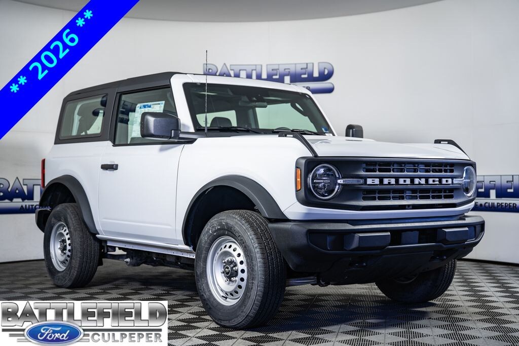 2026 Ford Bronco 12" CENTER DISPLAY AUTO START STOP TECH BRAKES, 4-WHEEL DISC/ABS FORD APP FRONT STABILIZER BAR HILL START ASSIST PRE-COLLISION ASSIST W/AEB PUSH-BUTTON START REAR VIEW CAMERA REMOTE KEYLESS ENTRY SYNC4 TER MGMT W/G.O.A.T. MODES TOOL KIT- DOOR/TOP REMOVAL, 4.46 Axle Ratio, AM/FM Stereo, Auto High-beam Headlights, Cloth Bucket Seats, Emergency communication system: 911 Assist, Equipment Group 101A, Exterior Parking Camera Rear, Ford Connectivity Package (1-Year Included), Remote keyless entry, SiriusXM with 360L, SYNC 4, Trailer Tow Package, Wheels: 16" Bright Polished Silver-Painted Steel. Price includes: $750 - Retail Customer Cash. Exp. 03/31/2026