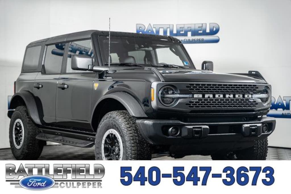 2026 Ford Bronco Badlands 12" CENTER DISPLAY ADVANCED 4X4 BRAKES, 4-WHEEL DISC/ABS FORD APP FRNT/REAR LOCKING DIFFRNTL HILL START ASSIST PRE-COLLISION ASSIST W/AEB PUSH-BUTTON START REAR VIEW CAMERA TER MGMT W/G.O.A.T. MODES TOOL KIT- DOOR/TOP REMOVAL, 2-Door Intelligent Access with Lock/Unlock, 4.7 Final Drive Ratio, AM/FM Stereo, Ambient Footwell Lighting, Auto High-beam Headlights, Auto-dimming Rear-View mirror, Carbonized Gray Molded-in-Color Hard Top, Connected Navigation, Driver and Front Passenger Illuminated Sliding Visor Vanity Mirrors, Dual Smart Charging USB Ports, Dual-Zone Electronic Automatic Temperature Control, Emergency communication system: 911 Assist, Equipment Group 332A Mid Package, Exterior Parking Camera Rear, Ford Connectivity Package (1-Year Included), Front Row Heated Seats, Front Stabilizer Disconnect, Hard Top Sound Deadening Headliner, Heated front seats, Heated Steering Wheel, High Clearance Suspension, Marine Grade Vinyl Heated Bucket Seats, Position-Sensitive Bilstein Shock Absorbers, Pro Power Onboard - 400W, Rear Parking Sensors, Rear-Window Defroster and Washer, Sasquatch Package, SiriusXM with 360L, SYNC 4, Trailer Tow Package, Wheels: 17" Matte Black Alloy. Price includes: $750 - Retail Customer Cash. Exp. 04/30/2026