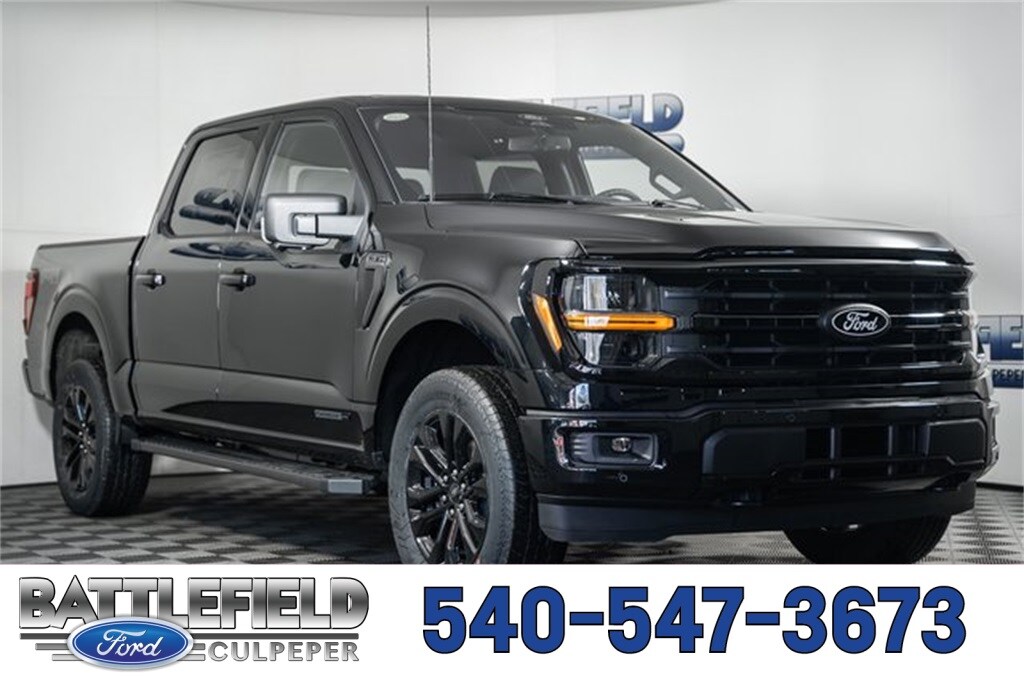 2026 Ford F-150 XLT 5G MODEM AUTO HOLD BLIS W/CROSS-TRAFFIC ALERT CLASS IV TRAILER HITCH W/ SMART TRLR TOW CONNECTOR FORD APP LANE-KEEPING SYSTEM POST-COLLISION BRAKING PRE-COLLISION ASSIST W/AEB REAR PARKING SENSORS REAR VIEW CAMERA REVERSE BRAKE ASSIST SELECTABLE DRIVE MODES SYNC4 W/EVR & 12" SCREEN, .TAILGATE STEP AND WORK SURFAC CONN PKG: 1 YR INCL W/FORD APP, 3.5L PowerBoost Full-Hybrid V6, 4WD, 360 Degree Camera, 4 Pickup Box Tie-Down Plates, 400W Pro Power Onboard (cab & Bed), 4x4 FX4 Off-Road Bodyside Decal, 6" Black Running Boards, Adaptive Cruise Control with Stop and Go, AEB Oncoming, Auto-Dimming Rear-View Mirror, Bed Storage Boxes, Bed Utility Package, Black Exterior Badging, Black Grille, Body-Color Door Handles, Body-Color Front and Rear Bumpers, Chrome Front and Rear Bumpers, Cloth 40/20/40 Front Seat, Console Worksurface, Dark Interior Appliques, Driver's Side SecuriCode Keyless-Entry Keypad, Dual Exhaust with Black Tips, Dual-Zone Electronic Automatic Temperature Control, Electronic Locking with 3.73 Axle Ratio, Equipment Group 302A Mid, Floor Shifter, Ford Co-Pilot360 Assist 2.0, Ford Connectivity Package (1-Year Included), Front Parking Sensors, FX4 Off-Road Package, Gray Box Side Decal, GVWR: 7,400 lbs Payload Package, Heated Front Seats, Hill Descent Control, Intelligent Access with Push Button Start, Internet access capable: 5G Modem - Ford Connectivity Package, LED Box Lighting, Mobile Office Package, Monotube Rear Shocks, Off-Road Tuned Front Shock Absorbers, Partitioned Lockable Rear Storage, Power Glass Heated Sideview Mirrors, Power-Sliding Rear Window, Radio: AM/FM Stereo with SiriusXM 360L, Remote keyless entry, Remote Start System with Remote Tailgate Release, Rock Crawl Mode, SYNC 4 with Enhanced Voice Recognition, Tailgate Step with Work Surface, Towing Technology, Tray Style Floor Liner Without Carpet Mats, Wheels: 20" Gloss Black Painted Aluminum, Wrapped Steering Wheel, XLT Black Appearance Package Plus.