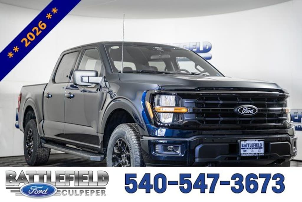 2026 Ford F-150 XLT 5G MODEM AUTO HOLD BLIS W/CROSS-TRAFFIC ALERT CLASS IV TRAILER HITCH W/ SMART TRLR TOW CONNECTOR FORD APP LANE-KEEPING SYSTEM POST-COLLISION BRAKING PRE-COLLISION ASSIST W/AEB REAR PARKING SENSORS REAR VIEW CAMERA REVERSE BRAKE ASSIST SELECTABLE DRIVE MODES SYNC4 W/EVR & 12" SCREEN, 4WD, 18" Painted Aluminum Wheels, 4 Pickup Box Tie-Down Plates, 4x4 FX4 Off-Road Bodyside Decal, 6" Black Running Boards, Auto High-beam Headlights, Bed Storage Boxes, Bed Utility Package, Black Exterior Badging, Black Grille, Body-Color Door Handles, Body-Color Front and Rear Bumpers, Cloth 40/20/40 Front Seat, Dark Interior Appliques, Dual-Zone Electronic Automatic Temperature Control, Electronic Locking with 3.31 Axle Ratio, Equipment Group 301A Base, Ford Connectivity Package (1-Year Included), FX4 Off-Road Package, Gray Box Side Decal, GVWR: 7,100 lbs Payload Package, Hill Descent Control, Internet access capable: 5G Modem - Ford Connectivity Package, LED Box Lighting, Monotube Rear Shocks, Off-Road Tuned Front Shock Absorbers, Radio: AM/FM Stereo with SiriusXM 360L, Rear Parking Sensors, Remote keyless entry, SYNC 4 with Enhanced Voice Recognition, Tailgate Step with Work Surface, Tray Style Floor Liner Without Carpet Mats, Unique Sport Cloth 40/Console/40 Front-Seats, Wheels: 18" Gloss Black, Wrapped Steering Wheel, XLT Black Appearance Package. Price includes: $2000 - Retail Customer Cash. Exp. 03/31/2026