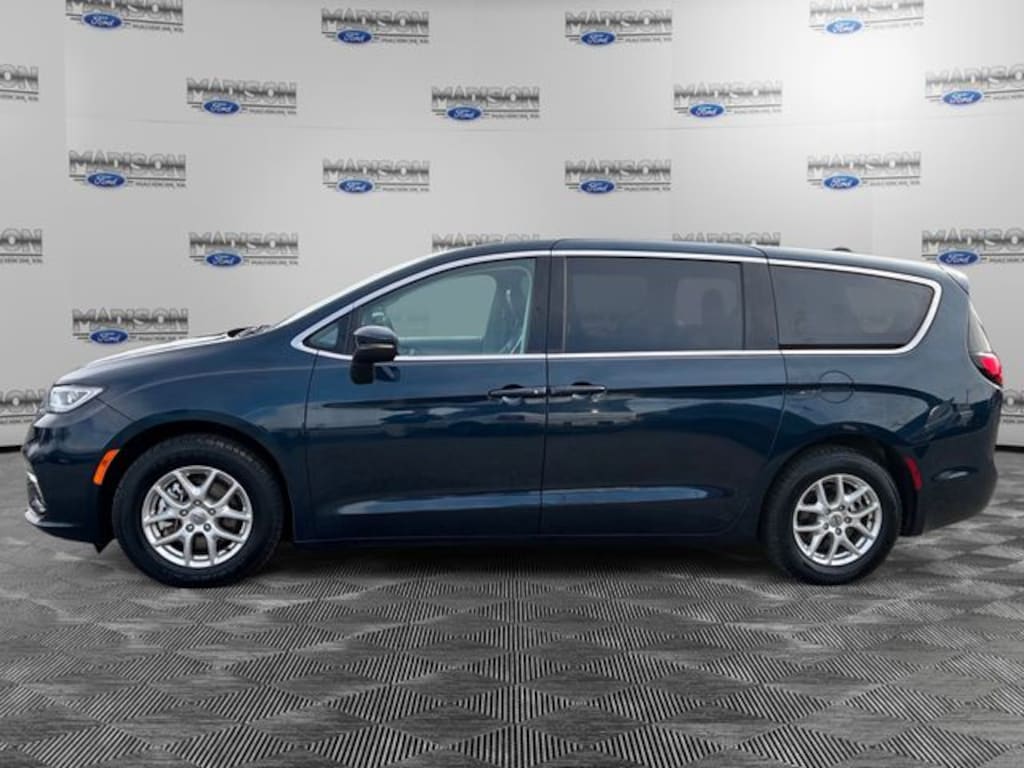 Fathom Blue Pearlcoat 2023 Chrysler Pacifica Touring L FWD 9-Speed 948TE Automatic 3.6L V6 24V VVT 10.1" Touchscreen Display, 17" x 7.0" Aluminum Wheels, Alloy wheels, Apple CarPlay/Android Auto, Caprice Leatherette Bucket Seats, Google Android Auto, Heated steering wheel, ParkView Rear Back-Up Camera, Power Liftgate, Quick Order Package 27L, Radio: Uconnect 5 w/10.1" Display.