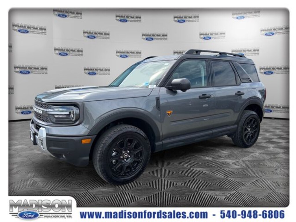 Gray Metallic 2025 Ford Bronco Sport Badlands 4WD 8-Speed Automatic EcoBoost 2.0L I4 GTDi DOHC Turbocharged VCT Equipment Group 400A, SYNC 4 w/Enhanced Voice Recognition.