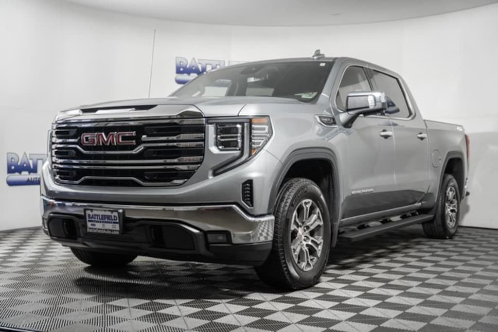 +++ 2025 GMC Sierra 1500 SLT +++ Clean CARFAX. 10-Speed Automatic, 4WD, Black Leather, 10-Way Power Driver Seat Adjuster w/Lumbar, 10-Way Power Passenger Seat Adjuster w/Lumbar, 120-Volt Bed Mounted Power Outlet, 120-Volt Interior Power Outlet, 2 Charge/Data USB Ports, 2 Type-C Charge-Only Rear USB Ports, AM/FM radio: SiriusXM with 360L, Apple CarPlay/Android Auto, HD Rear Vision Camera, Heated front seats, Hitch Guidance, Integrated Trailer Brake Controller, Navigation System, Preferred Equipment Group 4SA, Remote Vehicle Starter System, Trailering Package.