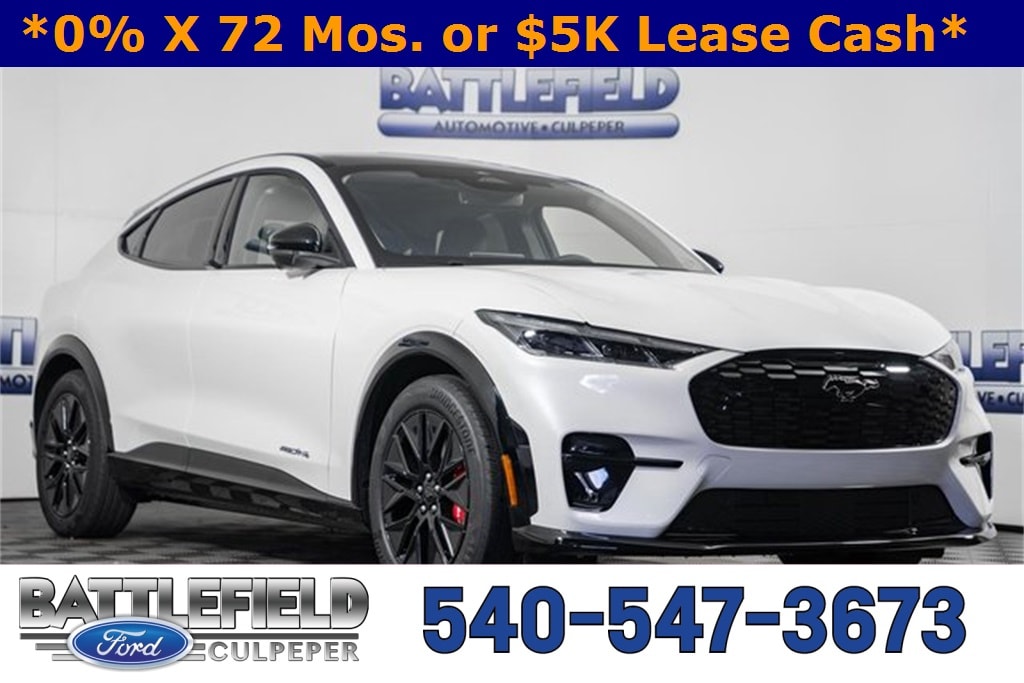 On select 2025 Ford Mustang Mach-E, ends 12/01/25**** 2025 Ford Mustang Mach-E Premium LONG RANGE*** 88KWH USABLE EXT NCM BATT, 360-DEGREE CAMERA B&O SOUND SYSTEM, 10 SPKR DRIVE MODES/ONE PEDAL DRV FORD CO-PILOT360ACTIVE2.0 FORDPASS CONNECT J1772 CCS COMBO CONNECTOR PHONE AS A KEY REGENERATIVE BRAKING SYS SIRIUSXM W/360L- NA AK&HI SYNC4A UP TO 150KW DC CHRG CAPABL VAPOR INJECTION HEAT PUMP WIRELESS CHARGING PAD, Apple CarPlay/Android Auto, Auto High-beam Headlights, Auto-dimming Rear-View mirror, Automatic temperature control, BlueCruise Equipped (1-Year Plan), Brembo Branded Front Brakes, Emergency communication system: 911 Assist, Equipment Group 300A Standard Package, Exterior Parking Camera Rear, Heated front seats, Heated steering wheel, Heated/Ventilated Perforated ActiveX Bucket Seats, Memory seat, Mobile Power Cord (120V/240V), NACS Fast Charging Adapter, Navigation system: Connected Navigation, Panoramic Fixed-Glass Roof, Power Liftgate, Radio: B&O Sound System by Bang & Olufsen, Rain sensing wipers, Red Painted Front & Rear Brake Calipers, Remote keyless entry, SiriusXM w/360L, Sport Appearance Package, Sport Pedals, SYNC 4A w/Enhanced Voice Recognition, Unique Front Fascia, Ventilated front seats, Wheels: 19" Monochromatic High Gloss Black-Painted. 103/94 City/Highway MPG Price includes: $2000 - EV Public Charging Credit(FPP Alt.). Exp. 01/05/2026 $3000 - Retail Customer Cash. Exp. 01/05/2026