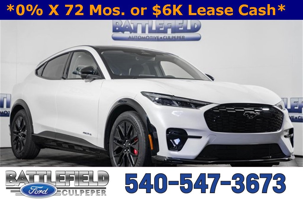 On select 2025 Ford Mustang Mach-E, ends 12/31/25**** 2025 Ford Mustang Mach-E Premium LONG RANGE*** 88KWH USABLE EXT NCM BATT, 360-DEGREE CAMERA B&O SOUND SYSTEM, 10 SPKR DRIVE MODES/ONE PEDAL DRV FORD CO-PILOT360ACTIVE2.0 FORDPASS CONNECT J1772 CCS COMBO CONNECTOR PHONE AS A KEY REGENERATIVE BRAKING SYS SIRIUSXM W/360L- NA AK&HI SYNC4A UP TO 150KW DC CHRG CAPABL VAPOR INJECTION HEAT PUMP WIRELESS CHARGING PAD, Apple CarPlay/Android Auto, Auto High-beam Headlights, Auto-dimming Rear-View mirror, Automatic temperature control, BlueCruise Equipped (1-Year Plan), Brembo Branded Front Brakes, Emergency communication system: 911 Assist, Equipment Group 300A Standard Package, Exterior Parking Camera Rear, Heated front seats, Heated steering wheel, Heated/Ventilated Perforated ActiveX Bucket Seats, Memory seat, Mobile Power Cord (120V/240V), NACS Fast Charging Adapter, Navigation system: Connected Navigation, Panoramic Fixed-Glass Roof, Power Liftgate, Radio: B&O Sound System by Bang & Olufsen, Rain sensing wipers, Red Painted Front & Rear Brake Calipers, Remote keyless entry, SiriusXM w/360L, Sport Appearance Package, Sport Pedals, SYNC 4A w/Enhanced Voice Recognition, Unique Front Fascia, Ventilated front seats, Wheels: 19" Monochromatic High Gloss Black-Painted. 103/94 City/Highway MPG Price includes: $1000 - Final Days Mega Bonus Cash. Exp. 01/02/2026 $2000 - EV Public Charging Credit(FPP Alt.). Exp. 03/31/2026 $3000 - Retail Customer Cash. Exp. 01/05/2026